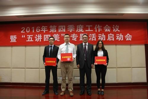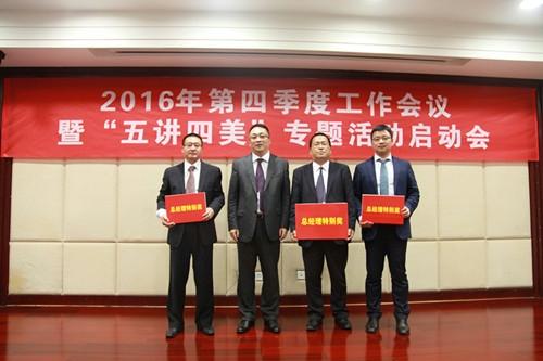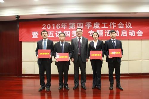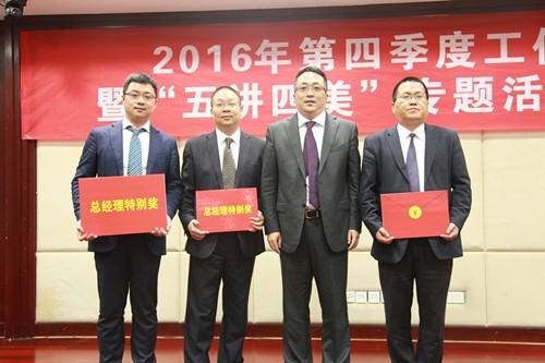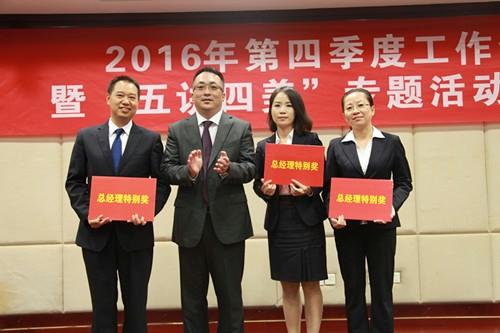公司总经理项琥向受到表彰的先进集体及员工颁发了总经理特别奖及奖金,并与他们合影留念。项琥表示,越是转型关键时期,越要发挥榜样的力量,希望受表彰的集体和个人,戒骄戒躁,再接再厉,在以后的工作中发挥模范带头作用,树标杆、做表率,勇当排头兵,百尺竿头更进一步。也希望全体员工向先进看齐,形成人人争当先进、人人争做贡献的良好氛围,为公司的发展贡献自己的力量。